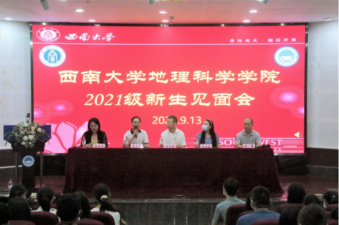 2021年9月13日上午九点,番号 2021级新生见面会在番号 101厅顺利召开。本次新生见面会由番号 党委副书记、纪委书记唐启华主持,番号 党委书记兼副院长喻尚其、副院长杨庆媛、番号 党委副书记兼纪委书记唐启华、副院长王勇、教师代表廖和平出席本次会议。同时出席的还有番号 系主任、全体辅导员、2021级班主任等其他教师代表以及2021级全体研究生和本科生。