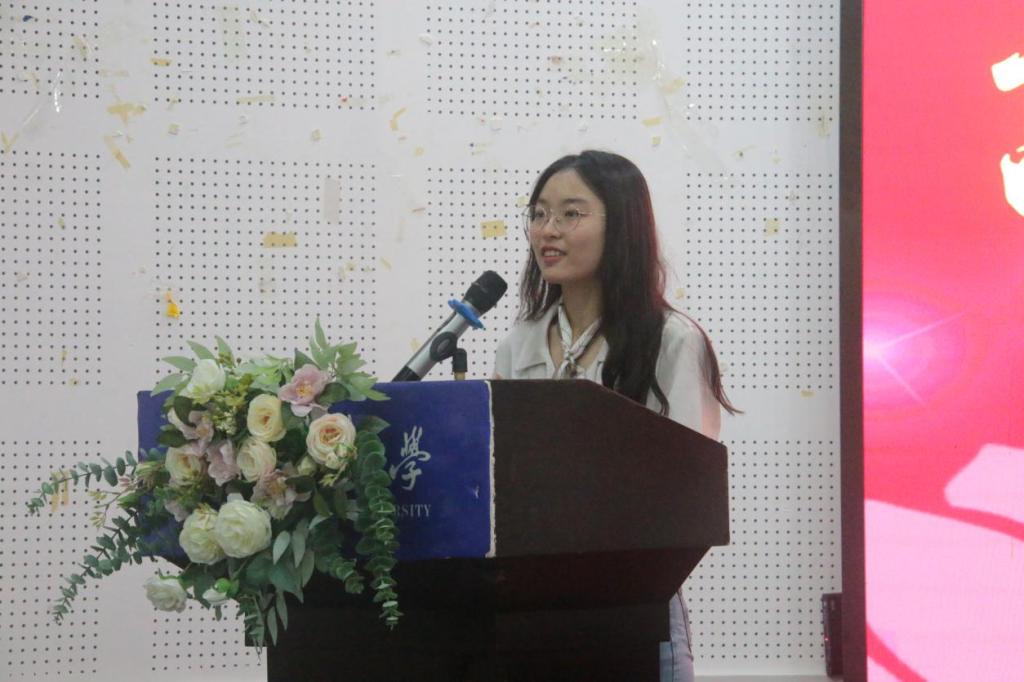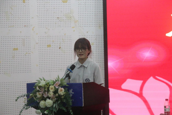 接着是新生代表2021级地理科学师范2班张宸歌的发言。她首先表达了对每位家长与老师的感谢与付出,接着讲述西大榜样带来的力量,对未来的大学生活表达自己的期许与目标,也号召每位同学团结互助、勇攀高峰。