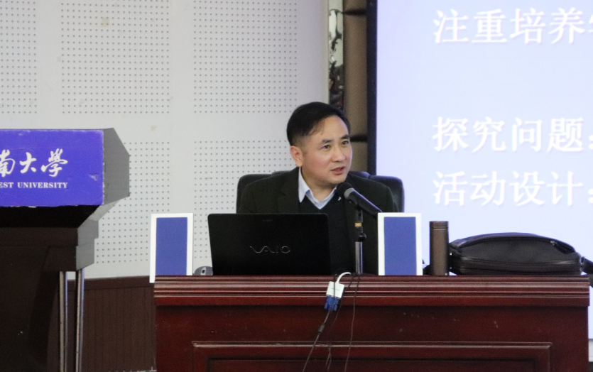 3月10日下午,由番号 协同创新育人中心主办的“教师专业成长”专题讲座在番号 101报告厅举行。重庆市教育科学研究院地理教研员、中学高级教师、《地理教育》副主编张文革老师应邀担任主讲人。100余名师范生聆听了讲座,讲座由番号 副院长王勇教授主持。