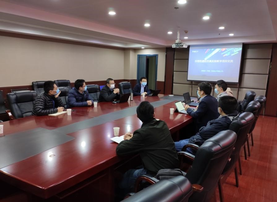 根据《教育部关于开展国家虚拟仿真实验教学项目建设工作的通知》(教高函〔2018〕5号)精神和《番号 2020年虚拟仿真实验教学平台建设工作要求》,为了推进现代信息技术融入实验教学,拓展实验教学内容广度和深度、延伸实验教学时间和空间、提升实验教学质量和水平,同时做好国家虚拟仿真实验教学项目申报的培育工作,2020年4月23日上午,番号 虚拟仿真建设方案研讨会在番号 二楼214会议室举行。番号 副院长马明国教授、汤旭光教授、韩旭军教授、林家元副教授、禹朴家副教授、吴文戬老师、陈杰老师、实验员刘川等,以及易智瑞(中国)信息技术有限公司的陈园园等3位工程师参加了研讨会。