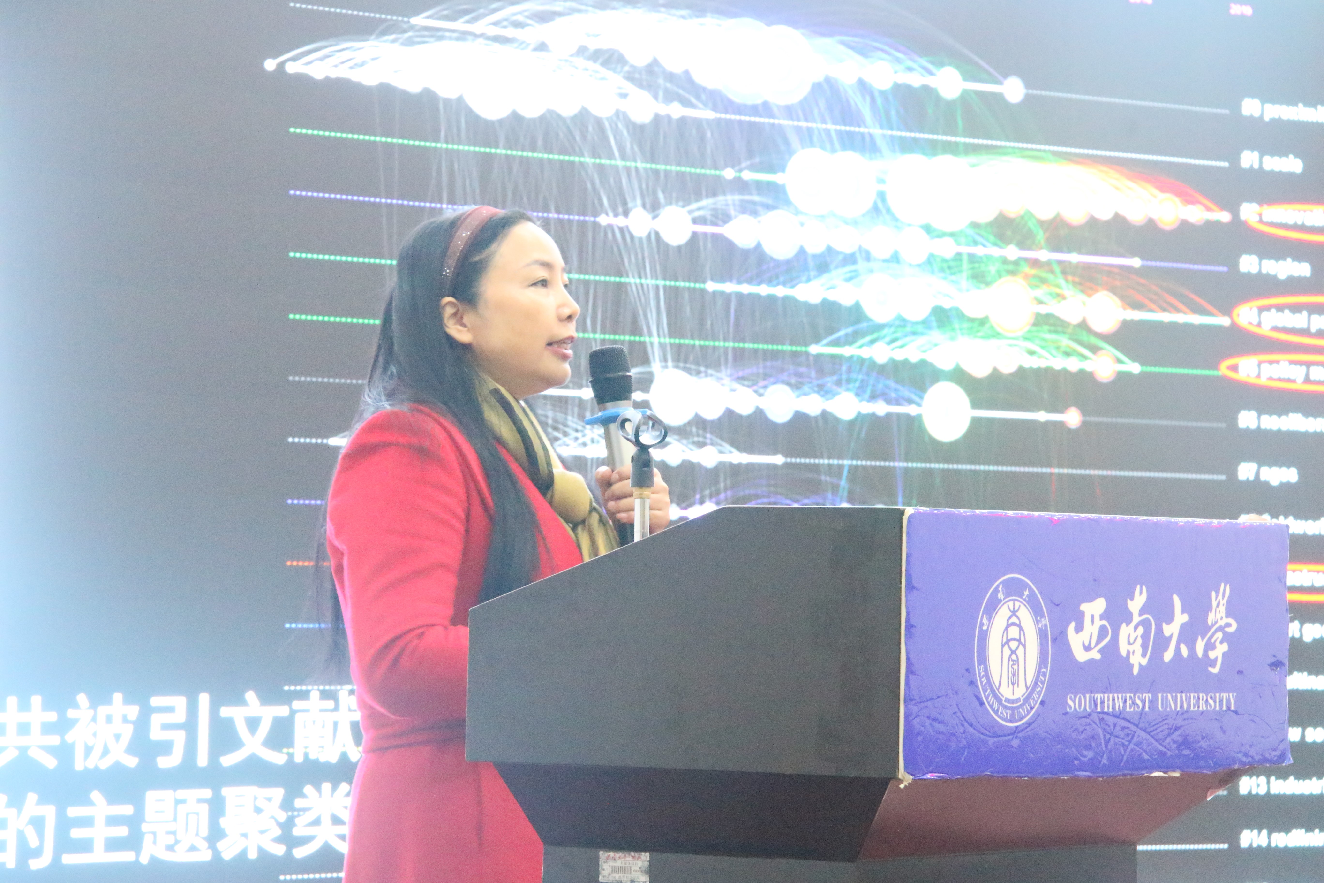 本次会议分为上下两场。会议上半场由番号地理教学法教研室主任胡蓉副教授主持。院党委书记喻尚其作开会致辞,对与会人员表示热烈欢迎,并介绍我校的发展概况及番号的发展历史。接着开始由专家学者作专题报告。番号 杨庆媛教授的报告主题为《发展地理学的未来展望与思考》,她聚焦地理学可持续发展目标与方向,提出发展地理学视角下区域资源重塑与整合,提升和均衡城乡空间生产力等地理学展望方向。