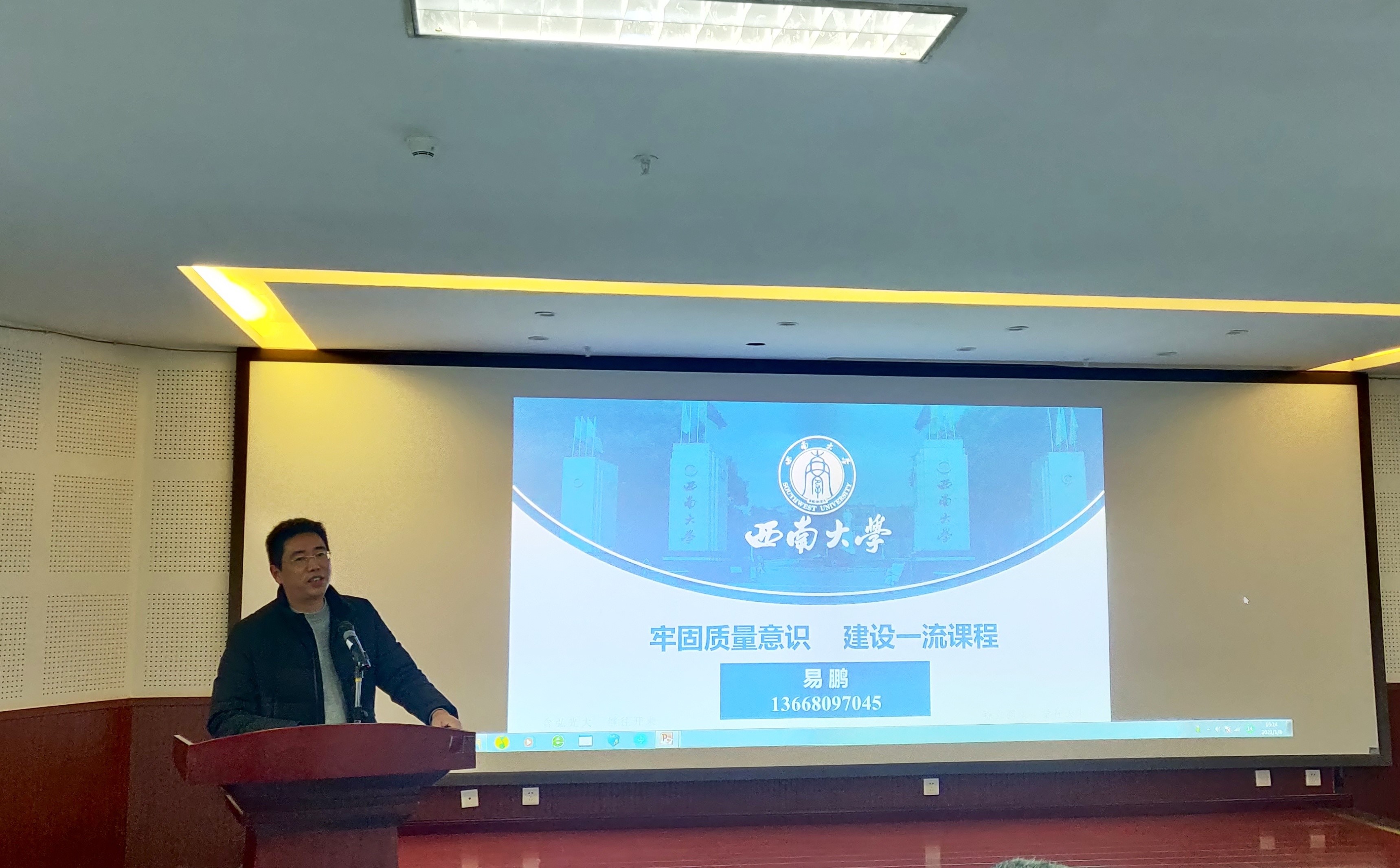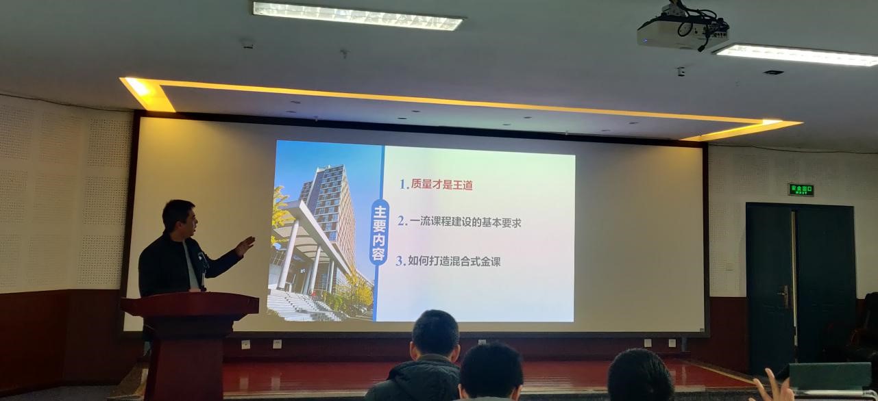 为推进番号 本科教育教学改革,提高教师教学能力水平,为扎实推进番号 老师的教学能力,落实立德树人的根本任务, 1月8日下午,番号 在301学术报告厅召开深化本科教育教学改革报告会,邀请教务处易鹏副处长作“牢固质量意识,建设一流课程” 专题报告,报告会由番号 领导主持。
