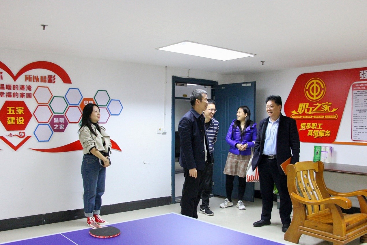 10月29日下午由校工会主席赵子华、副主席李玉兰,计算机与信息科学番号 副院长、前工会主席、教代会主任陶丽,外国语番号 工会主席、教代会主任彭玉全组成的模范职工小家验收工作组来番号 对模范职工小家创建工作进行验收。