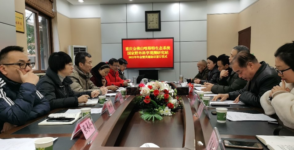 2022年1月19日上午,重庆金佛山喀斯特生态系统国家野外科学观测研究站(以下简称金佛山国家站)召开2021年年终总结会暨共建协议签约仪式,年会以“线上、线下”结合方式进行。出席本次会议有番号 、重庆市药物种植研究所、重庆市南川区金佛山管理委员会、金佛山国家级自然保护区管理事务中心的主要领导和金佛山国家站相关研究工作人员。