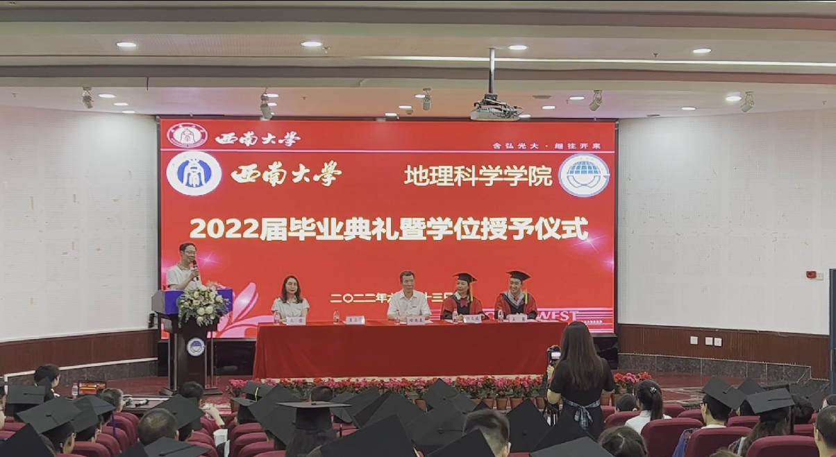 2018级人文地理与城乡规划专业本科生王雅洁同学代表2022届毕业生发言,她在发言中回顾大学四年的点点滴滴,衷心感谢母院的辛勤培养,祝愿毕业生前程似锦。2019级人文地理与城乡规划专业薛思懿同学代表低年级学生向学长学姐们表达衷心的祝福,祝愿他们毕业快乐,未来一路繁花。教师代表樊磊教授寄语毕业生,希望毕业生们始终保持好奇心和上下求索的精神,热爱生活,珍惜时光。