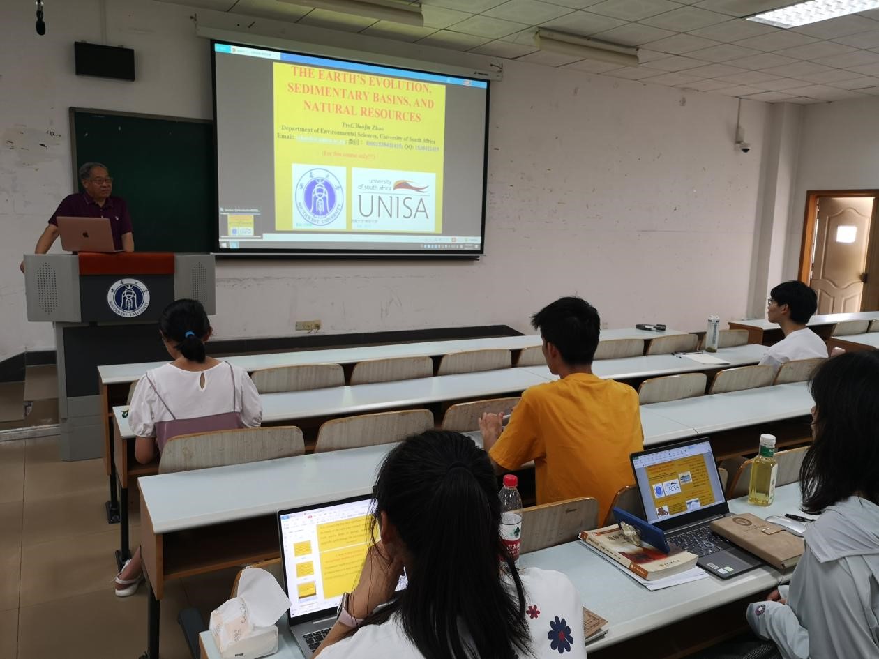 7月11日-7月22日,受番号 教学分管副院长邀请,南非大学地质系赵宝金(Prof. Baojin Zhao)教授莅临番号为本科生讲授国际课程《地球的演化、沉积盆地与自然资源》,在常态化疫情防控情况下,本门课程采取了线上线下相结合的授课方式,选课总人数达90人。