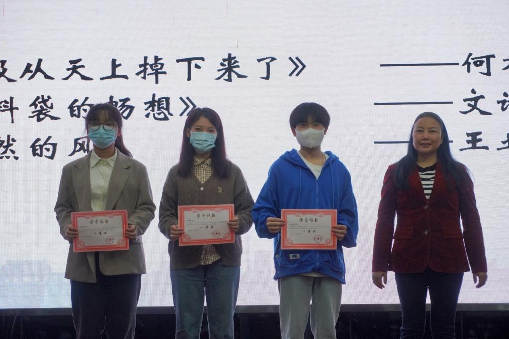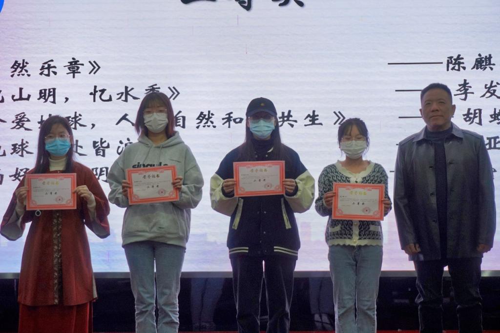 典礼伊始,学会理事长兼番号 行政主要负责人杨庆媛老师致辞。首先,杨院长代表番号 对重庆市规划和自然资源学会的大力支持表示感谢。随后,杨院长以本次大赛的主题为切入点,将本次大赛的意义与习近平生态文明思想的内在联系进行了深刻阐释。最后,杨院长对活动的有序组织和良好的活动效果给予了高度肯定,激励番号 学生树立环保理念,做一名有担当的地学人。致辞结束后,四位老师分别为获奖的同学颁奖,并合影留念。