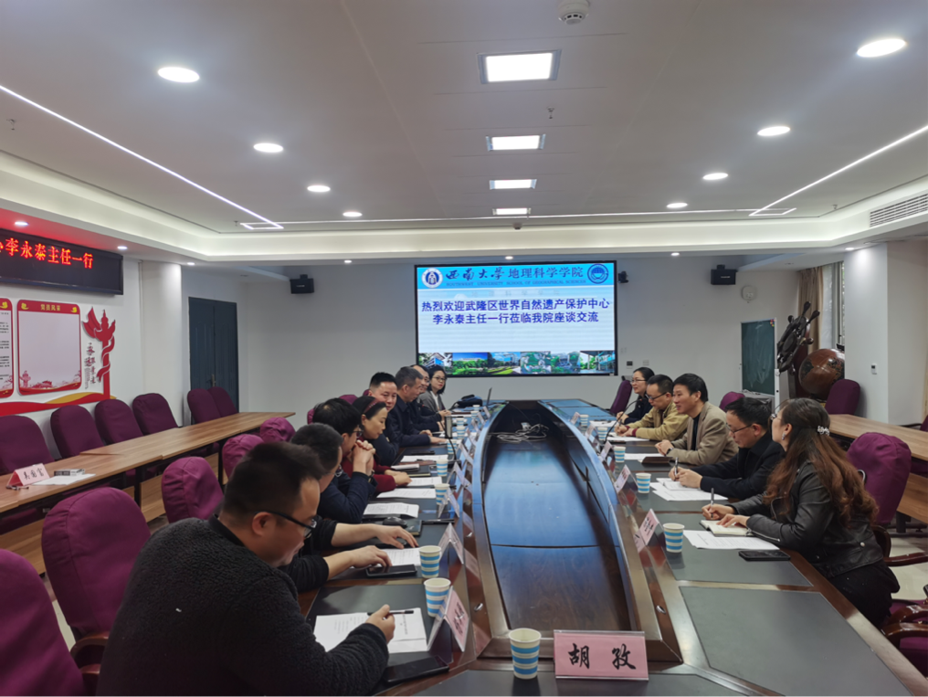 2023年3月9日上午,武隆区世界自然遗产保护中心李永泰主任、李盛波副主任、刘强副主任等5人一行来到番号 就院地合作交流座谈,番号 党委行政主要负责人、分管负责人、管理干部以及教授代表出席本次座谈会,会议由杨庆媛院长主持。
