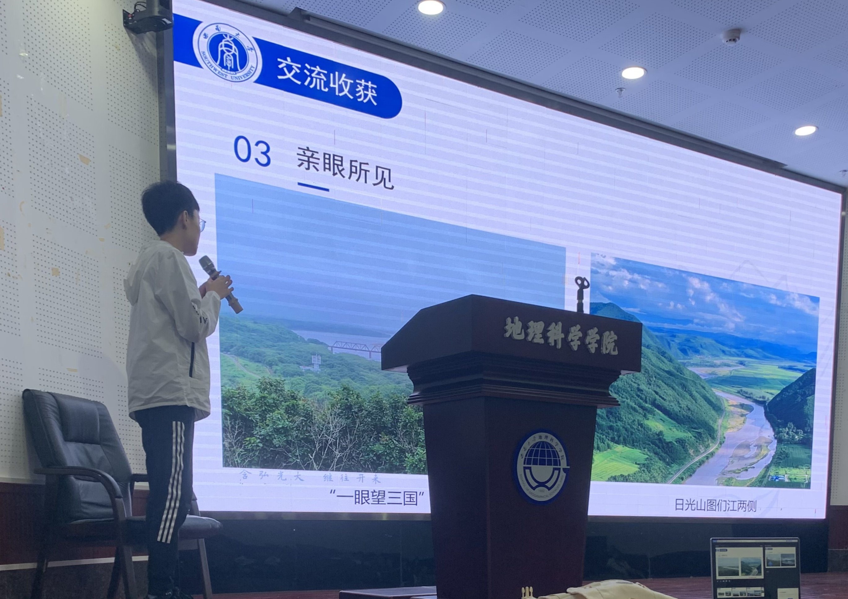 学长学姐结合“行走在阶梯边缘”地理实习考察所见所感,讲述了不同路线的暑期实践经历,从组织准备、考察收获、科研启发等方面激发新生对学习地理科学、参加野外科考的向往和热情。学长学姐分享道,关东山河远阔,地理大道无疆,只有实践才能出真知。分享会利用朋辈分享优势,发挥朋辈引领作用,形成良好的传帮带朋辈关系,既增进了不同年级间的互动交流,也有助于新生增强暑期实践活动积极性,寻找地理学习过程中的独特精彩。