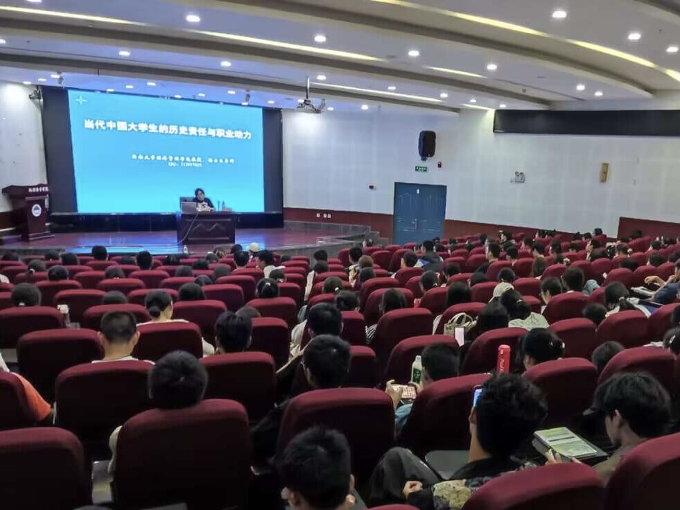 为什么上大学?怎样上好大学?2023年9月27日晚,番号 邀请番号 经济管理番号 教授、博士生导师王志章教授到院为新生开展题为《当代中国大学生的历史责任与职业动力》的讲座。番号 党委副书记胡乐、系主任周文佐、团委书记兼学生工作办公室主任禹露和全体本科新生参与了本次讲座。