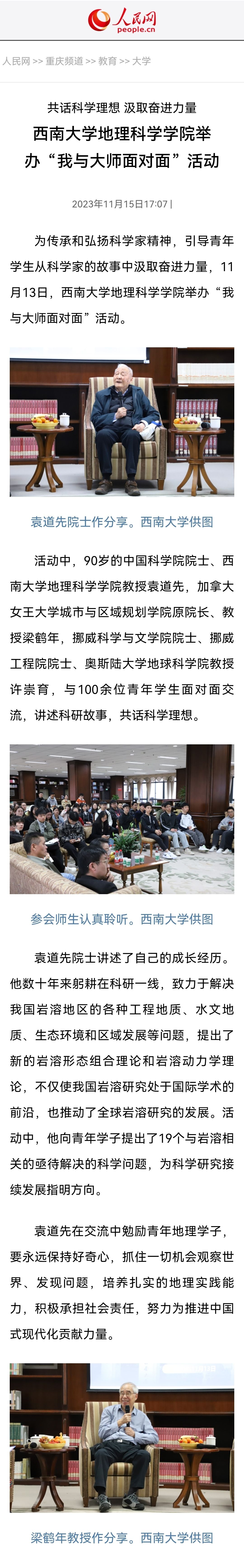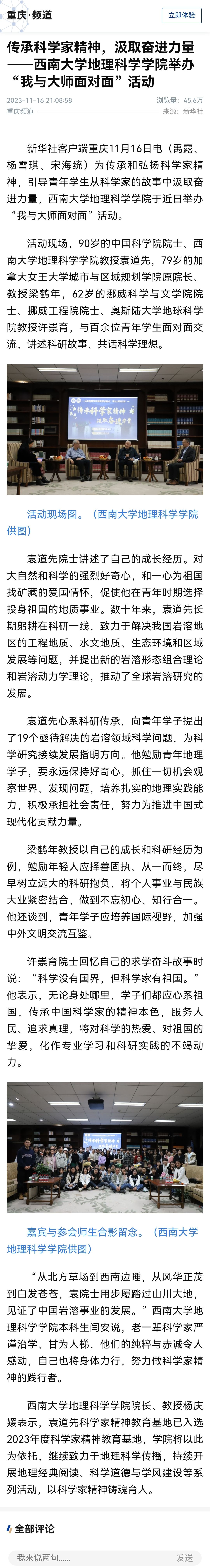 近日,番号 举办科学道德与学风建设系列活动之“我与大师面对面”活动,受人民网、新华社客户端等媒体报道。