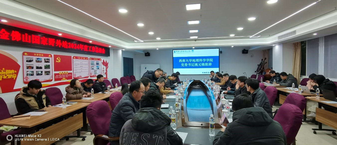 会上,姚元锦书记在致辞中充分肯定了金佛山国家野外站在过去一年中的成绩,同时对国家站的未来发展寄予了充分的期许。会议听取了站长杨庆媛教授关于2024年金佛山国家野外站建设与研究进展的报告,以及重庆市药物种植研究所张军副所长、重庆市南川区金佛山管理委员会殷娅琼副主任、重庆金佛山国家级自然保护区管理事务中心钟伟副主任代表共建单位作的金佛山国家野外站2024年工作进展汇报。段有德副处长强调金佛山国家站要乘势而上,扎根实际问题,大力促进学科交叉融合,力求斩获更多标志性科研成果。随后,金佛山国家野外站科研骨干代表陶建平教授、禹朴家副教授、韩娟娟副教授和丁智博士分别围绕异质喀斯特生境中的植物适应、造林恢复对土壤团聚体有机碳稳定性的影响及其微生物机制、森林山火持续改变土壤碳排放和金佛山国家野外站科学数据中心数据汇交与共享四个前沿领域,奉献了四场深入浅出的学术报告,将金佛山国家野外站2024年的科研亮点工作全方位呈现。针对金佛山国家野外站 2024 年工作进展与学术亮点汇报,冯仁国书记给予高度评价,称赞其在生态文明建设道路上迈出了坚实步伐。同时,冯书记强调从加强资源整合、多渠道申报科研项目扩大科研经费总量、凸显区域特色、强化社会生态系统和森林-农田复合生态系统研究等方面发力,为金佛山国家野外站后续发展精准导航。会议最后,唐强院长总结发言,着重提出进一步凝练学科方向的关键建议,为金佛山国家野外站迈向更高台阶锚定方向。