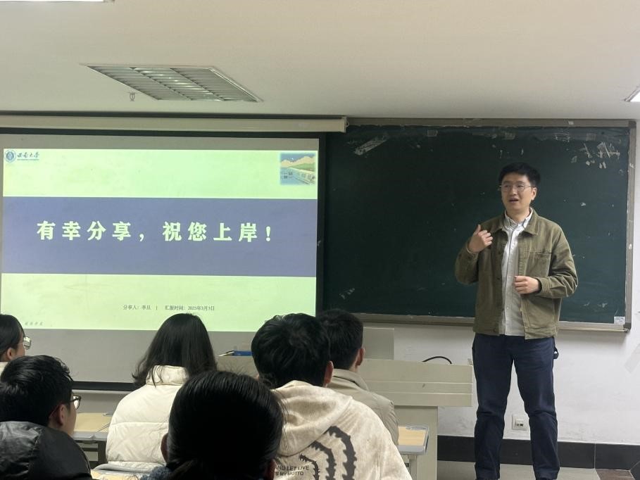 为助力学生备战2025年全国硕士研究生招生考试复试,番号于3月3日下午14:30在番号 215教室举办了考研复试及调剂经验分享会。此次分享会由番号 党委副书记胡乐、2021级班主任代表、新东方培训机构讲师以及本院优秀研究生代表共同主讲