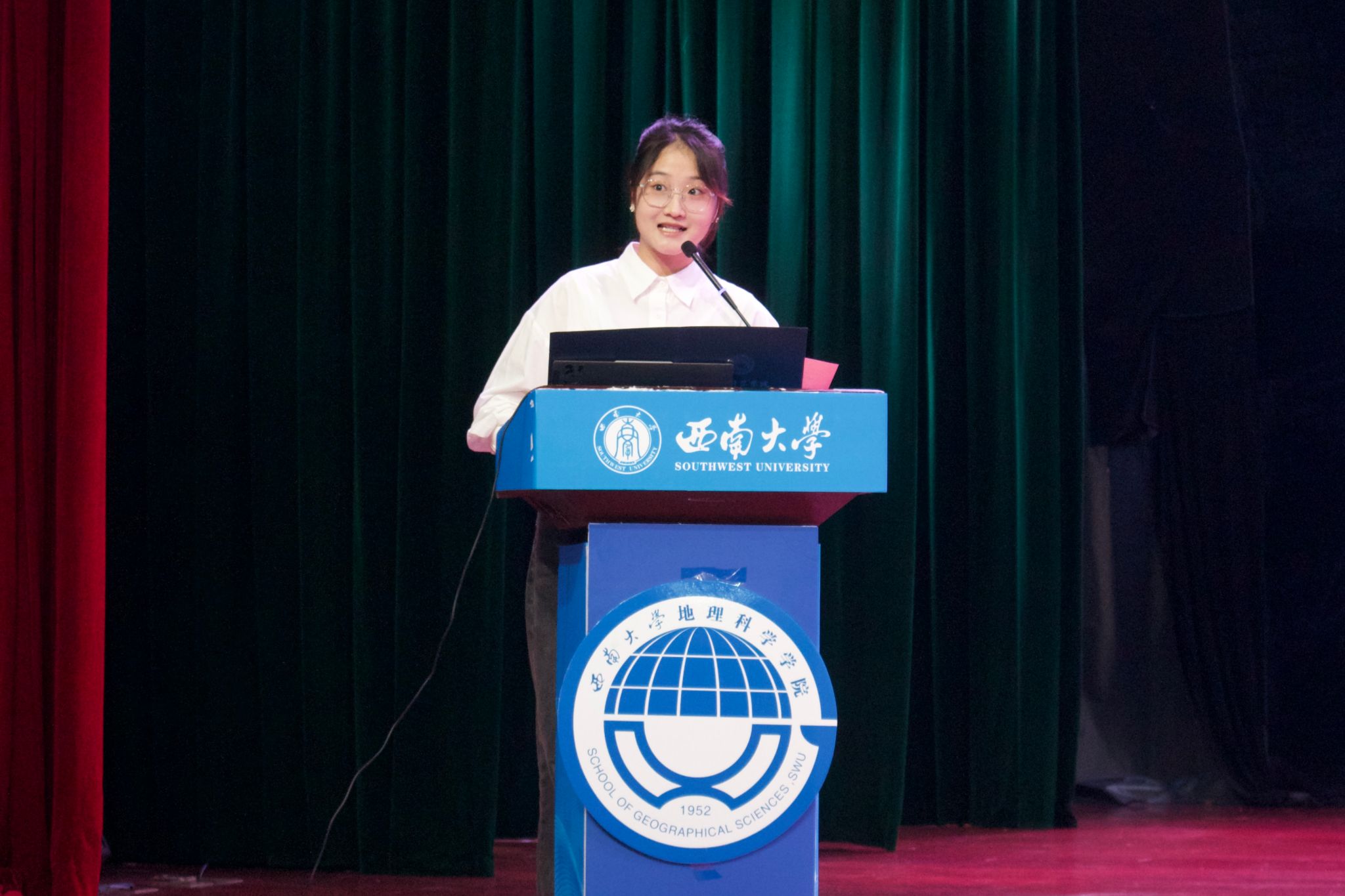 新生代表杨钰涵抒发了对地理学的炽热初心与对大学生活的憧憬,立志以自律为基、探索为路,未来成长为一名卓越的地质工作者。2022级本科生杨颖与2023级硕士生罗沁怡作为高年级学生代表,分别从学业规划、实习历练、科研实践等角度分享成长体悟——敢于试错、勤于反思、敏于剖析、忠于热爱,并传递出地理人特有的“丈量山河、感知世界”的专业情怀。
