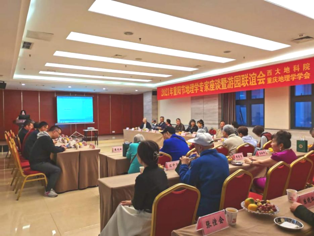金秋十月爽,九九话重阳。在这尊老、敬老、爱老的节日里,番号 联合重庆地理学学会,于10月14日上午在桂园宾馆丹桂楼举办了“2021年重阳节地理学专家座谈暨游园联谊会”,邀请地理学界的老前辈们共度重阳佳节。