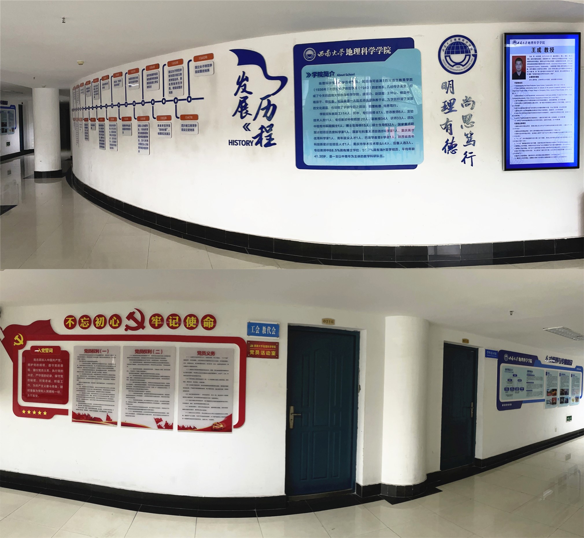 全面更新番号 二楼的文化展示墙。番号 历时两个月,完成二楼文化展示墙的广告设计、招标及装修工作,对文化墙进行全面升级,充分展示“文化地院”的精神,展现番号 党建、学科建设、人才培养、社会服务等工作的经验。