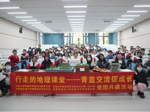12月8日上午,番号 本科生第二党支部、番号 附属中学校高2026届党支部联合共青团番号 附属中学校委员会、共青团番号 委员会共同举办“行走的地理课堂”系列活动之“青蓝交流促成长”。本次活动以党团共建为契机,加强师范生党团员和附中学生之间的学习交流,有效整合党建资源,实现以党建带团建。通过共建的形式达到资源共享、优势互补、共同提升、促进发展的目标,实现党团共建聚合力,联学共建谱新篇。