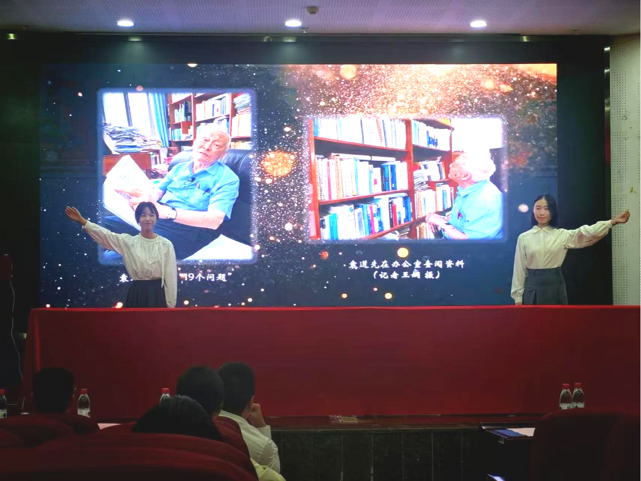 会议伊始,与会人员共同听取由2023级本科生魏诗晨、魏哲宇带来的《把一生溶化在岩溶研究中》袁道先院士事迹讲述。袁道先院士化国家需求为个人兴趣,以民生福祉为终点,将一生溶化在岩溶研究中,其以领路人姿态激励广大学子传承科学家精神,为人民幸福和民族复兴接续奋斗。