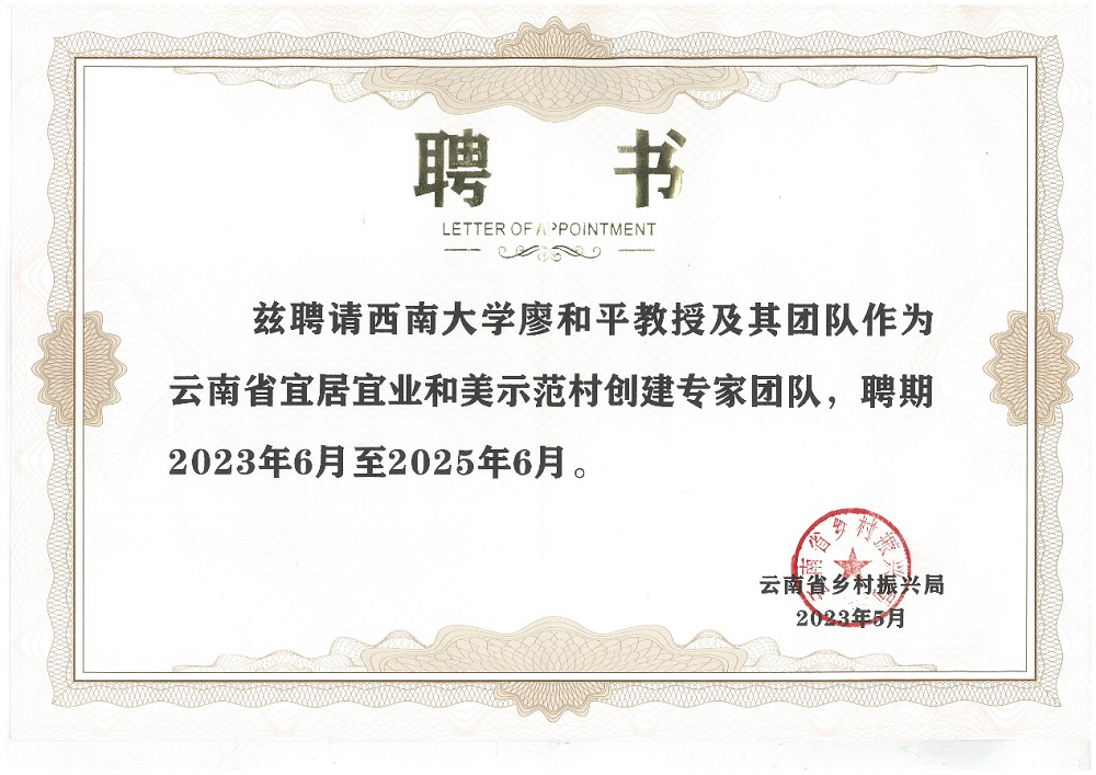 廖和平教授团队受聘“云南省宜居宜业和美示范村创建”专家团队